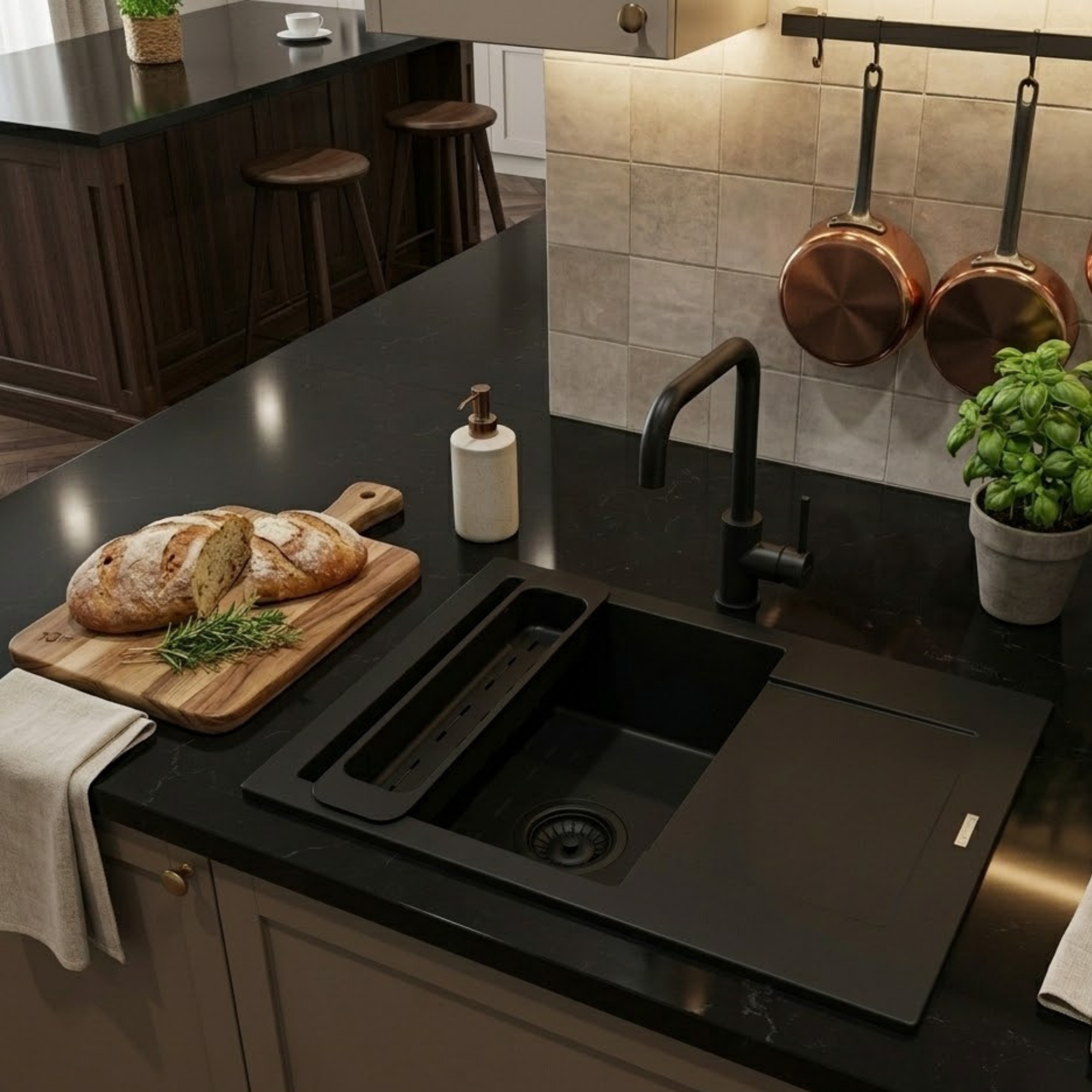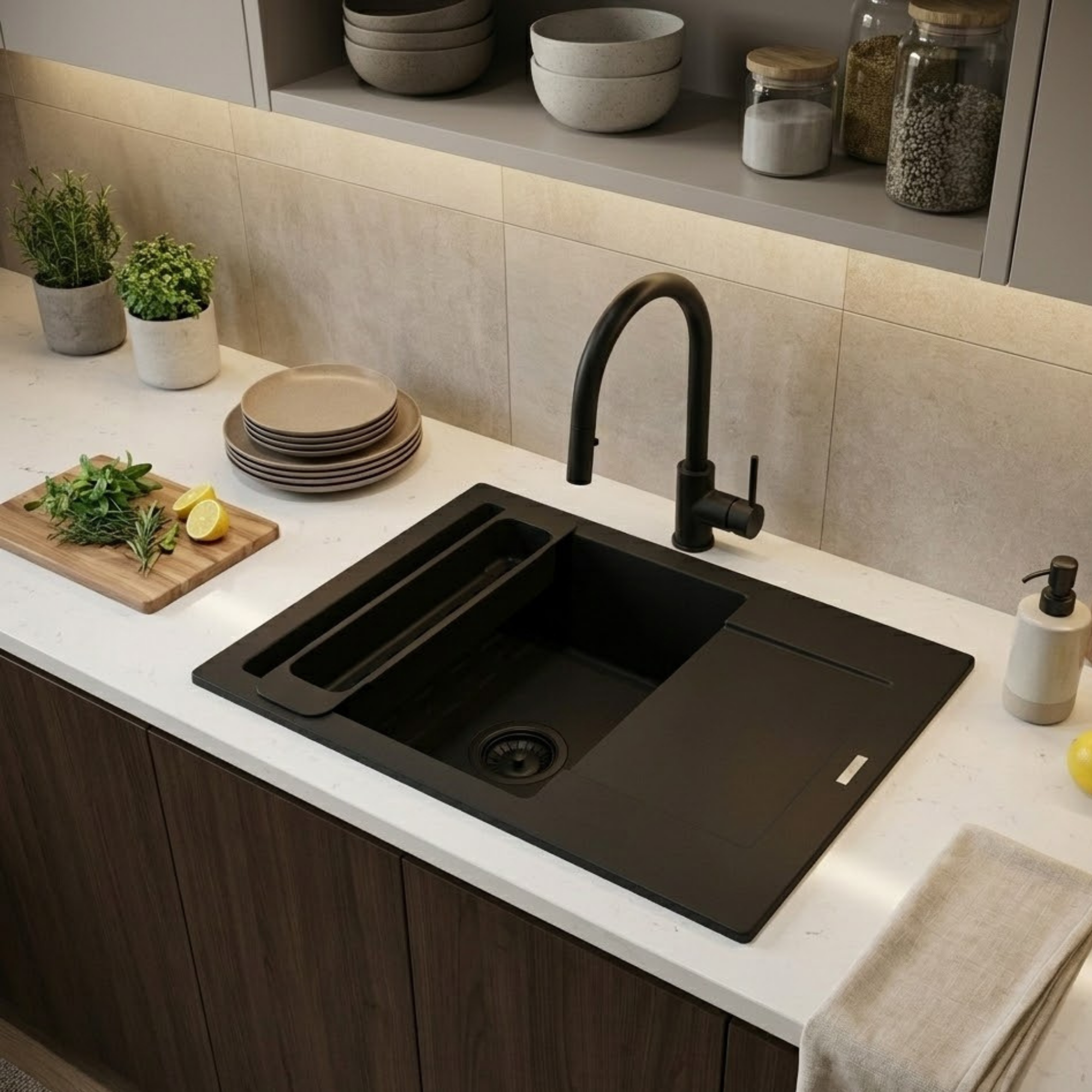- Nowoczesny wygląd – elegancki czarny kolor pasujący do współczesnych kuchni
