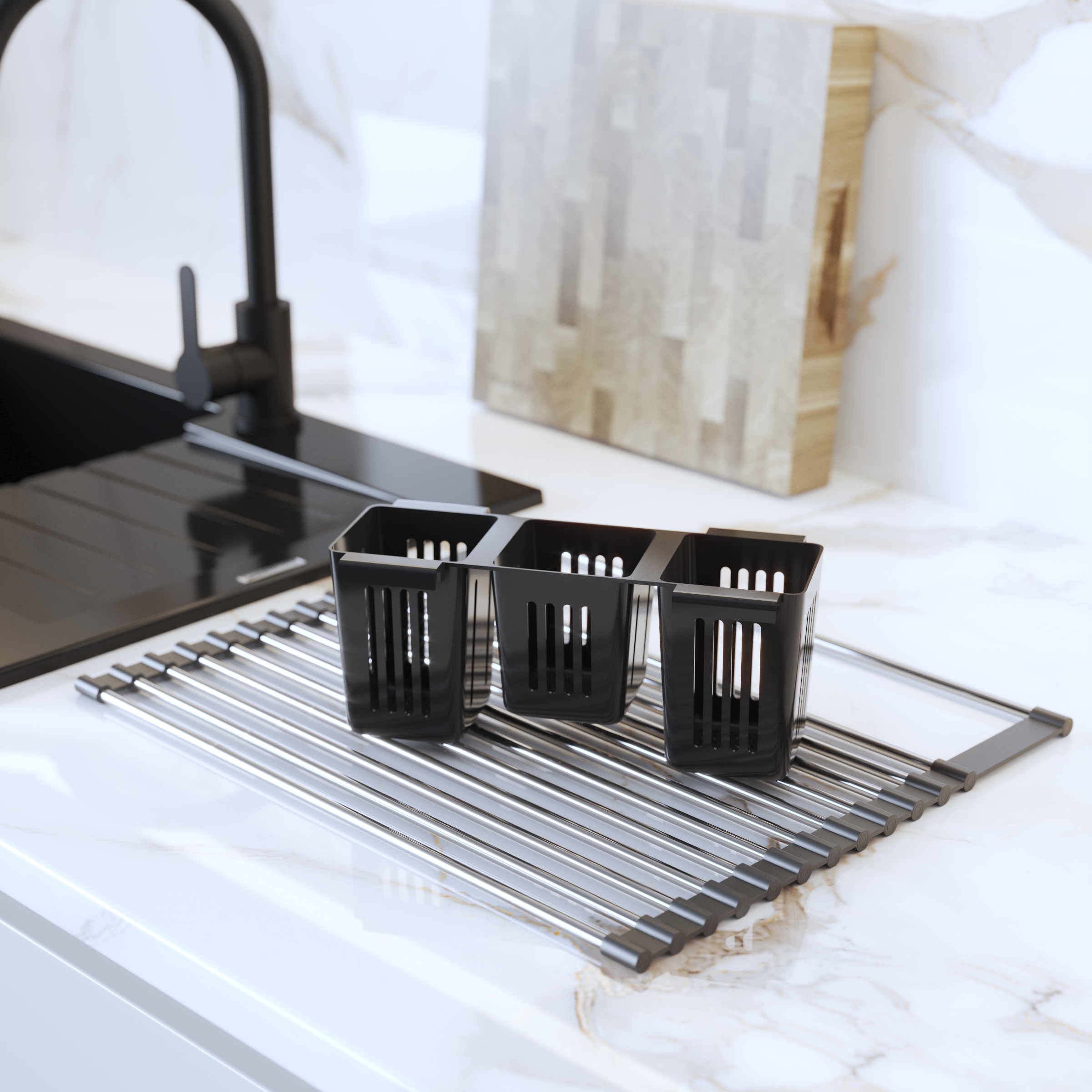 Odkryj naszą wielofunkcyjną, zwijaną ociekarkę na zlewozmywak – synonim nowoczesności, oszczędności miejsca i maksymalnej funkcjonalności. To nie jest zwykły ocieacz – to innowacyjny organizer kuchenny, idealnie dopasowany do Twoich potrzeb.