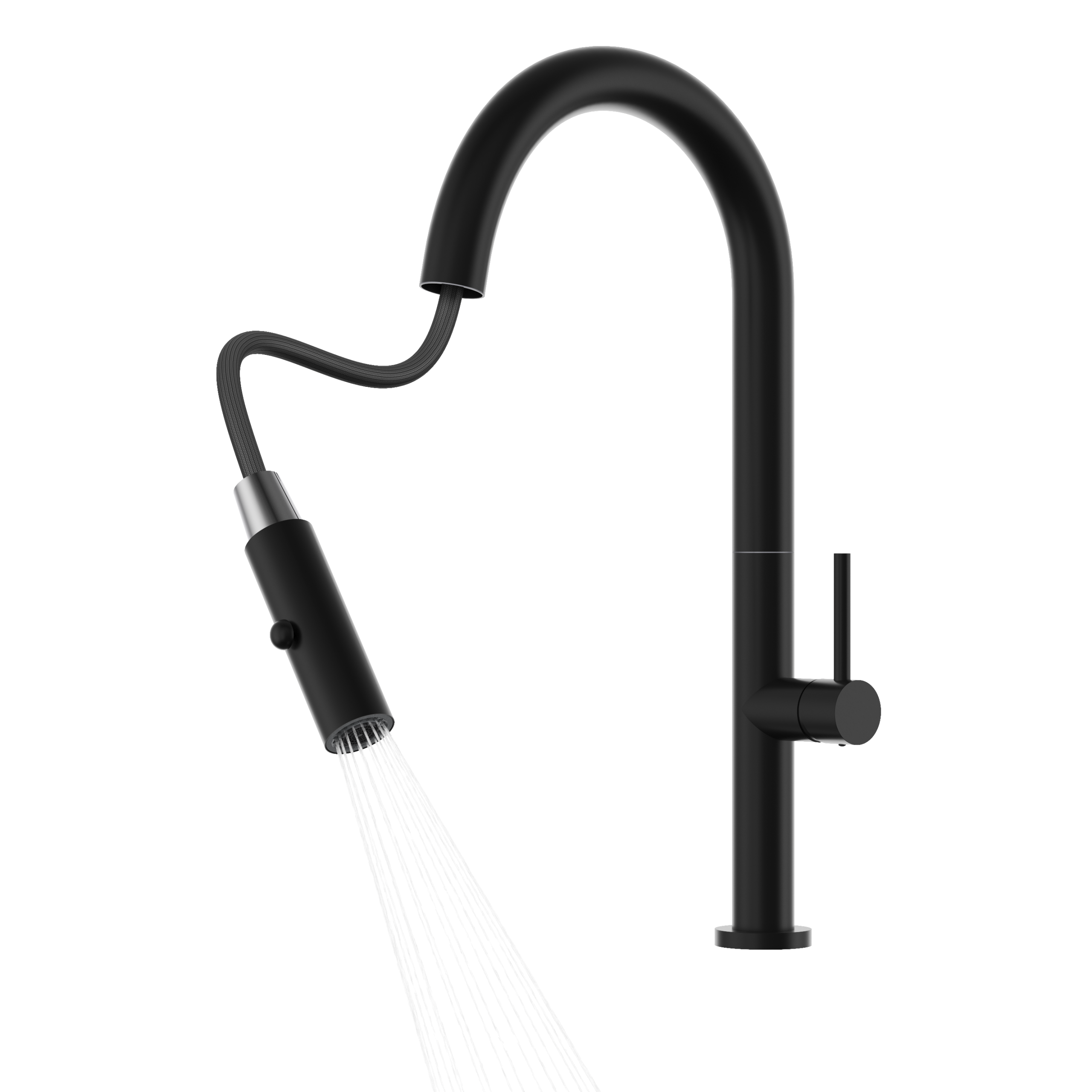Bateria wyposażona jest w praktyczną, wyciąganą wylewkę, która ułatwia napełnianie naczyń i dokładne mycie zlewu. Elastyczny przewód zapewnia wygodę i pełną swobodę ruchu. Ergonomiczny przycisk na końcówce pozwala szybko zmieniać tryb strumienia.