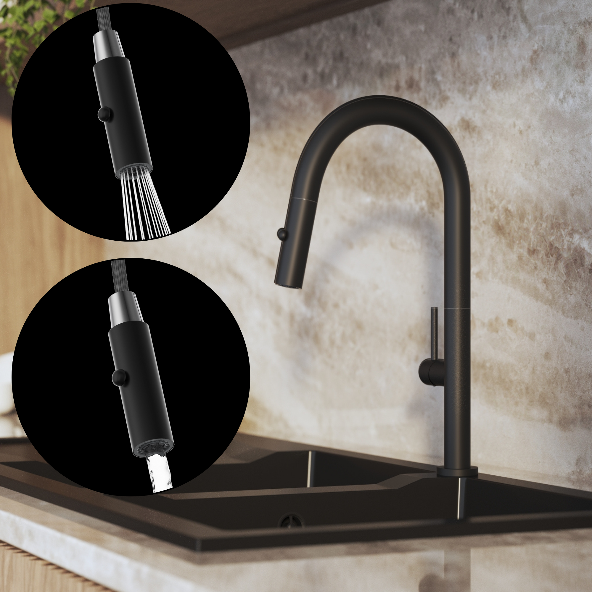 Kolor czarny wyróżnia się gładką, matową powierzchnią, która nadaje baterii elegancki i nowoczesny charakter. To ponadczasowe wykończenie doskonale wpisuje się w różne style kuchni, podkreślając jej estetykę i schludność.
