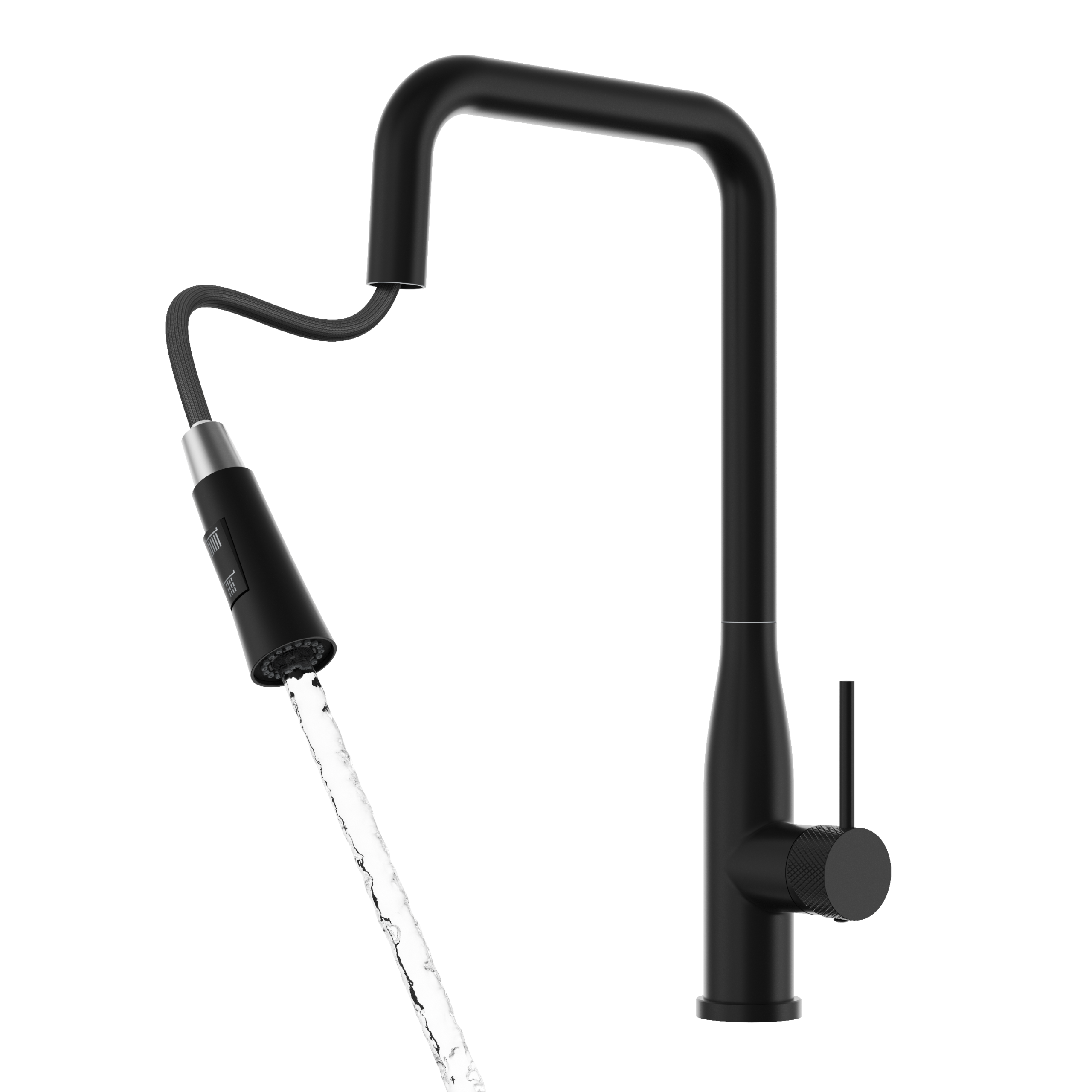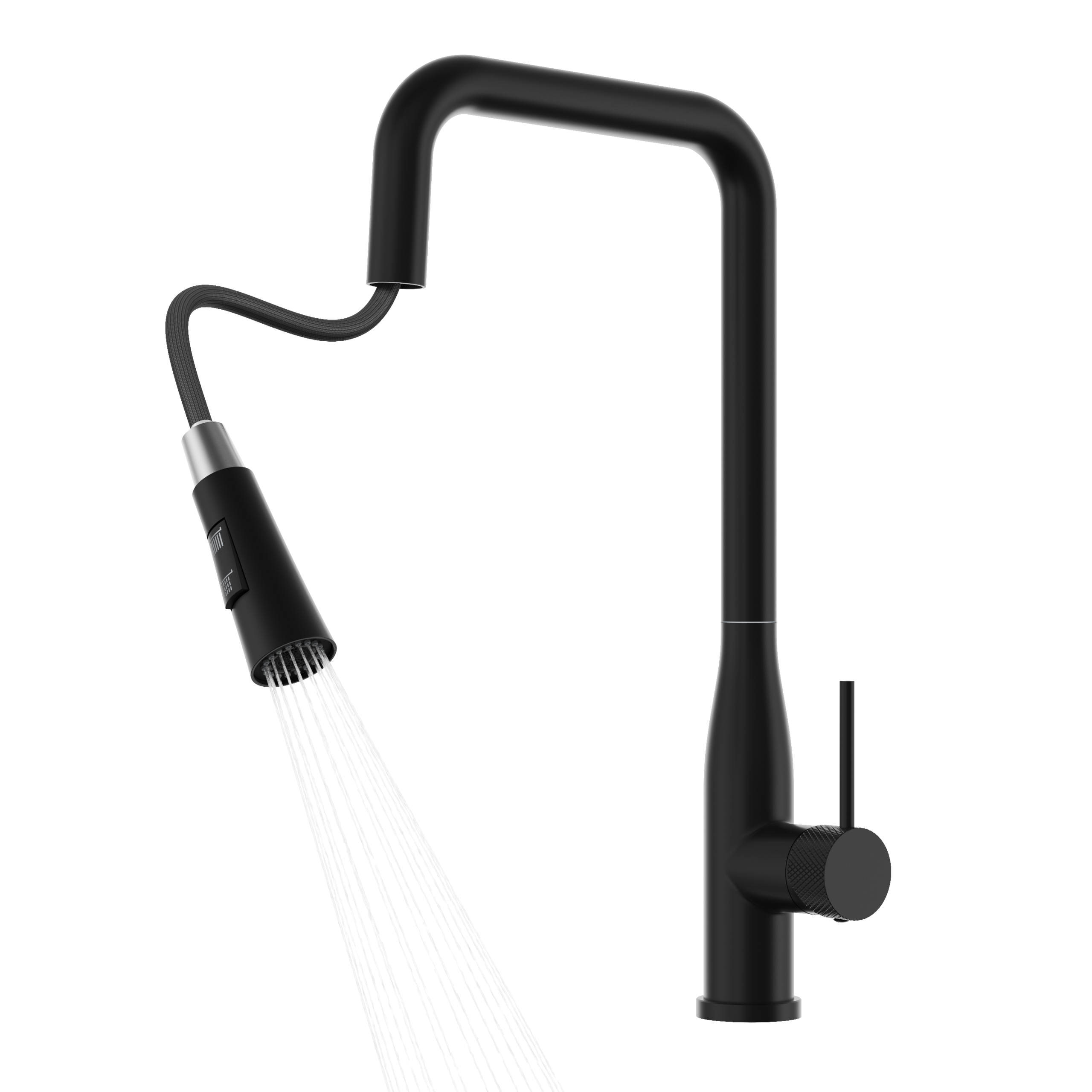 Bateria kuchenna VECTOR czarnym wykończeniu wyróżnia się eleganckim, nowoczesnym designem oraz wysoką funkcjonalnością. Model wyposażony jest w praktyczną, wyciąganą wylewkę, która ułatwia płukanie naczyń, mycie komory zlewu oraz napełnianie większych garnków.