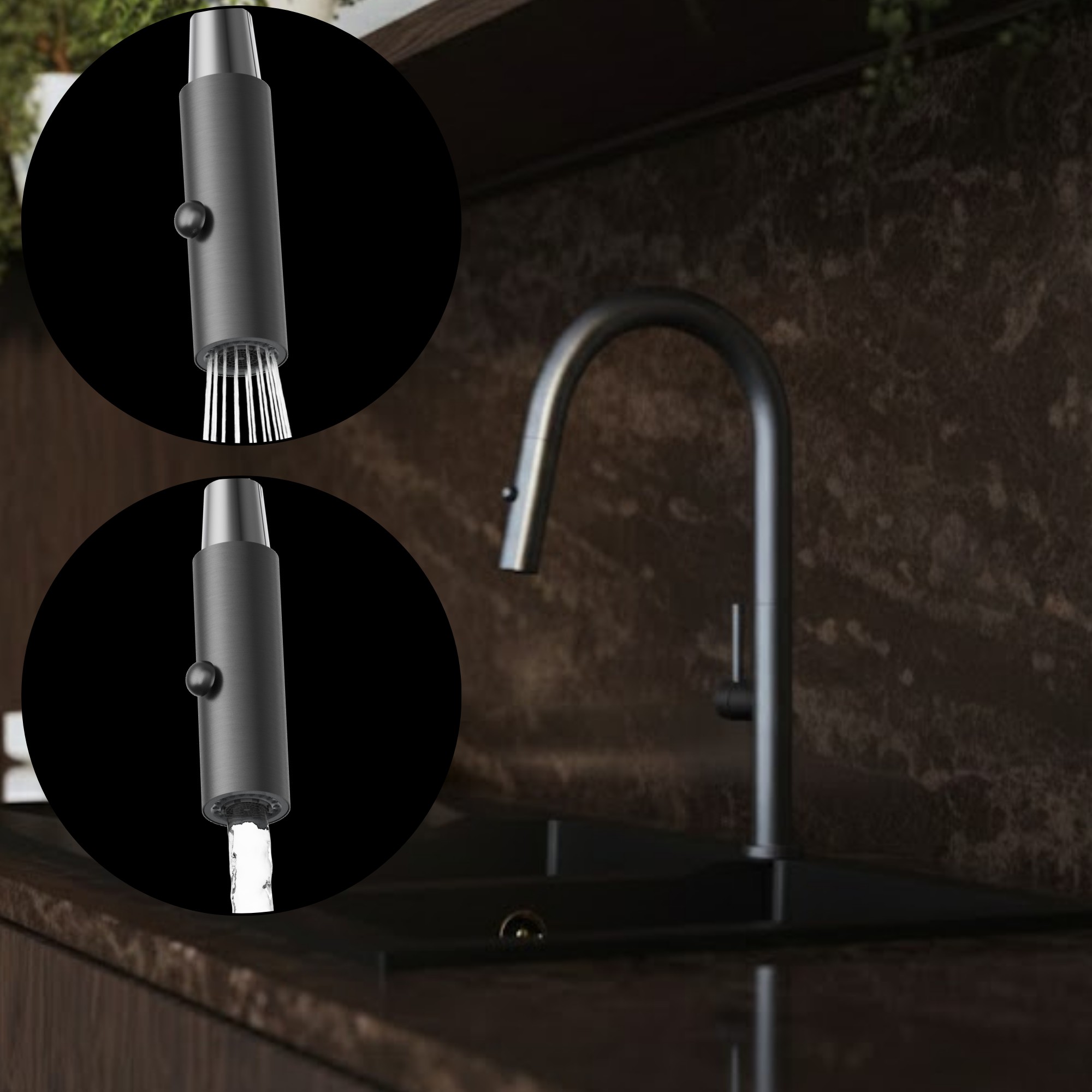 Wylewka jest wyposażona w przycisk umożliwiający szybkie przełączanie między klasycznym strumieniem, a funkcją natrysku: