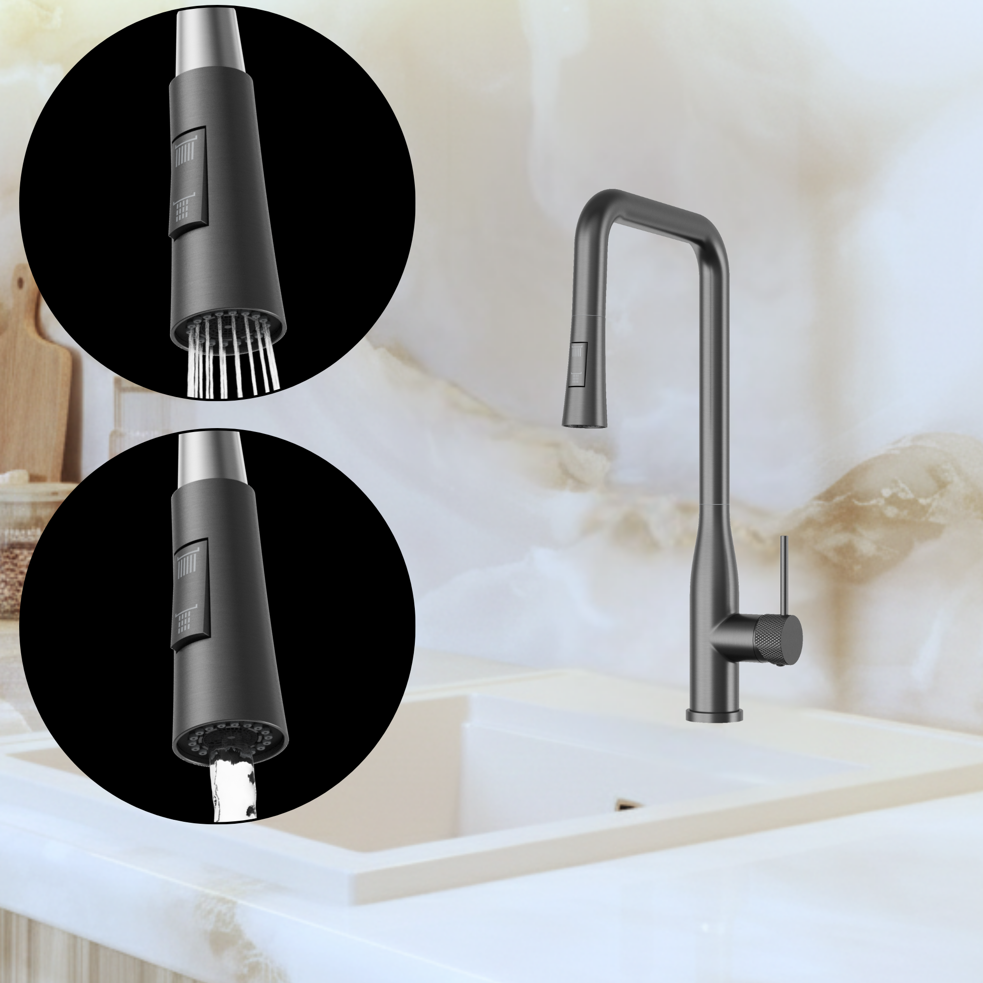 Bateria kuchenna VECTOR z wyciąganą wylewką – GUNGREY elegancka i wyjątkowo funkcjonalna