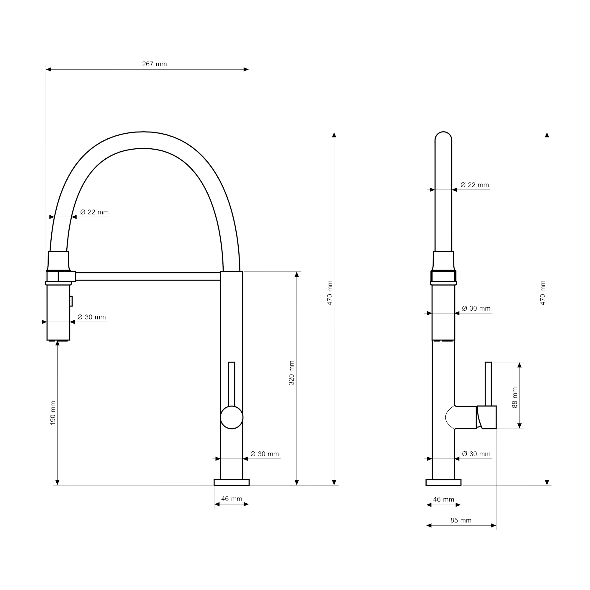 - Zasięg wylewki (od osi baterii): 267 mm