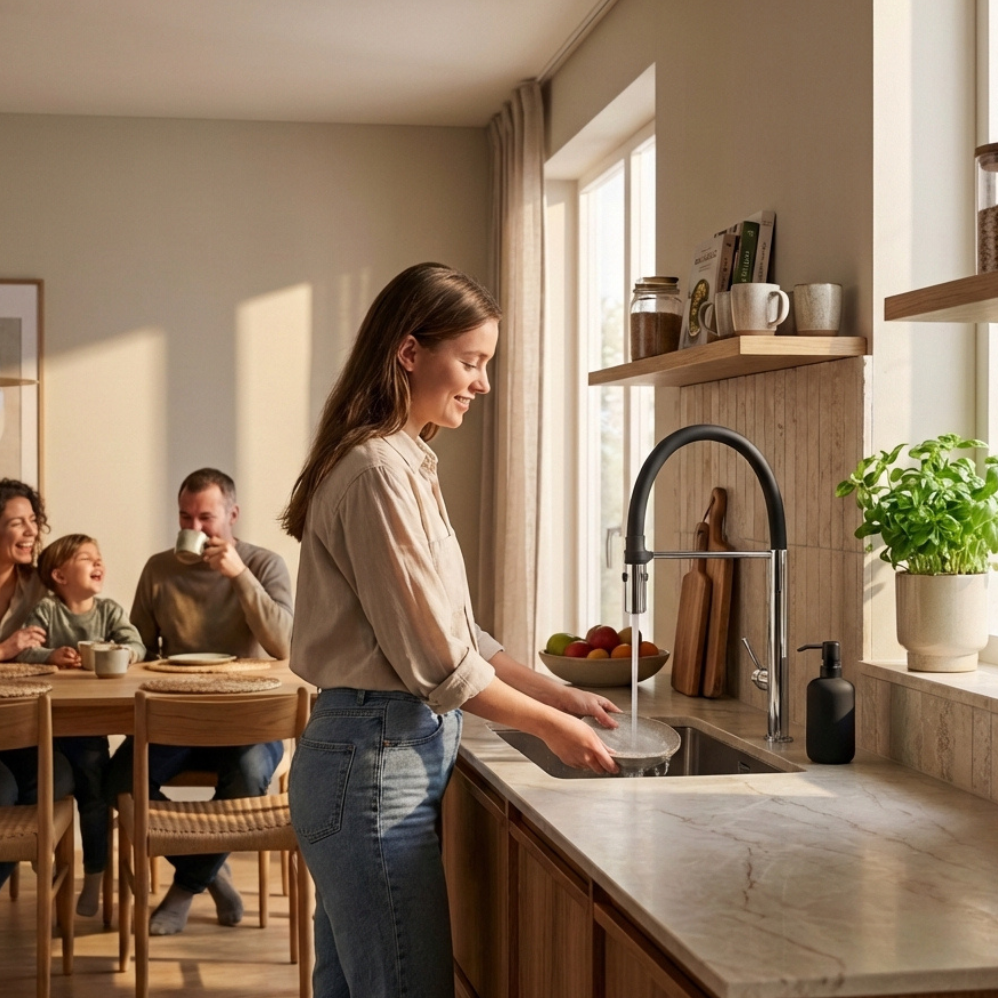 Bateria ułatwia codzienne obowiązki w kuchni – szybciej umyjesz naczynia, wygodniej opłuczesz warzywa i bez problemu napełnisz duże garnki. Stabilna konstrukcja i praktyczne funkcje oszczędzają czas, zwiększają wygodę i sprawiają, że praca przy zlewie staje się przyjemniejsza.