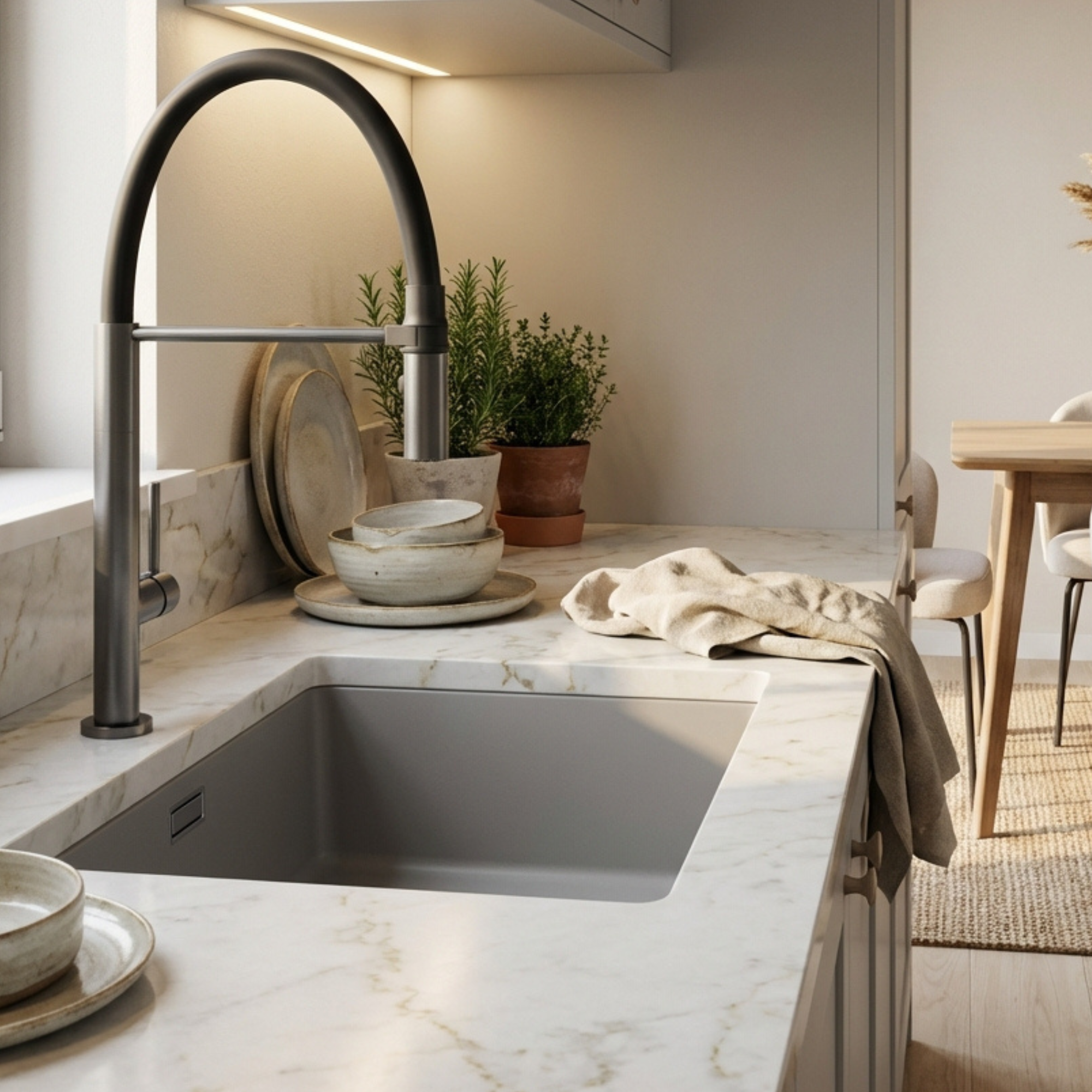 Bateria ułatwia codzienne obowiązki w kuchni – szybciej umyjesz naczynia, wygodniej opłuczesz warzywa i bez problemu napełnisz duże garnki. Stabilna konstrukcja i praktyczne funkcje oszczędzają czas, zwiększają wygodę i sprawiają, że praca przy zlewie staje się przyjemniejsza.