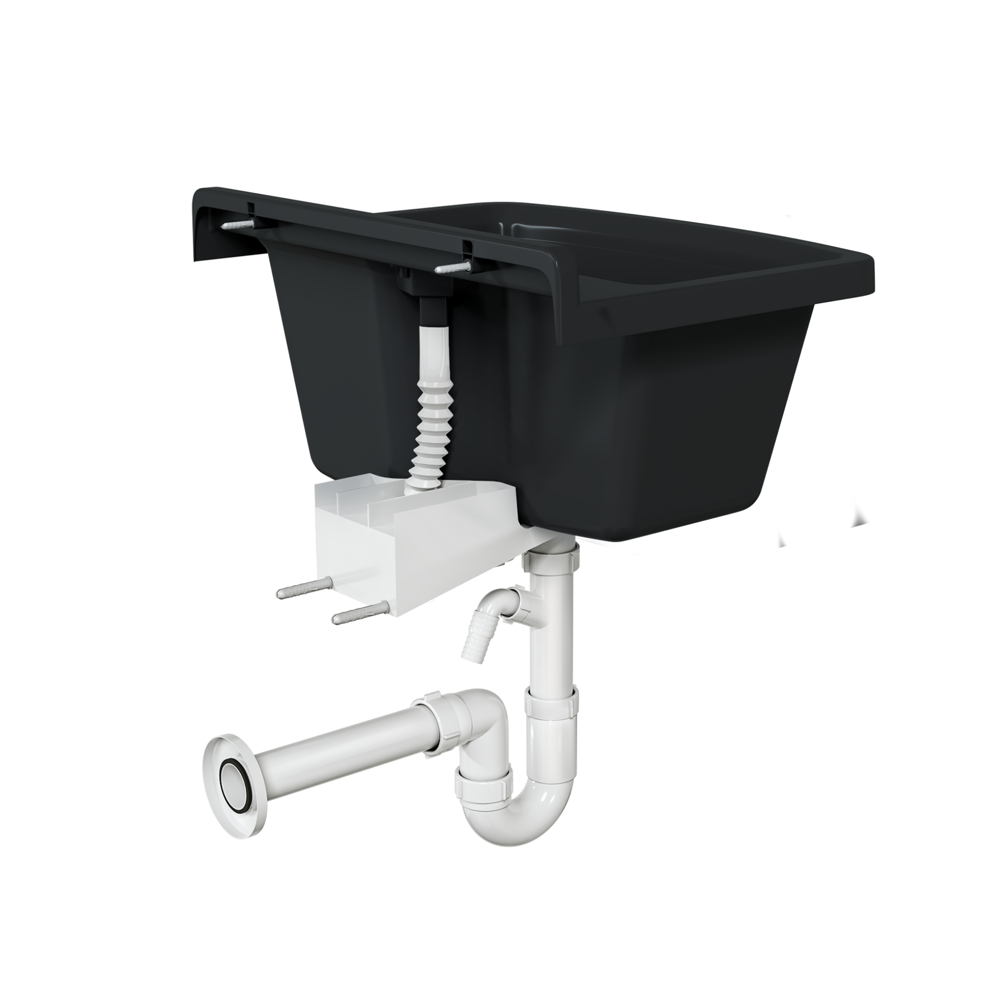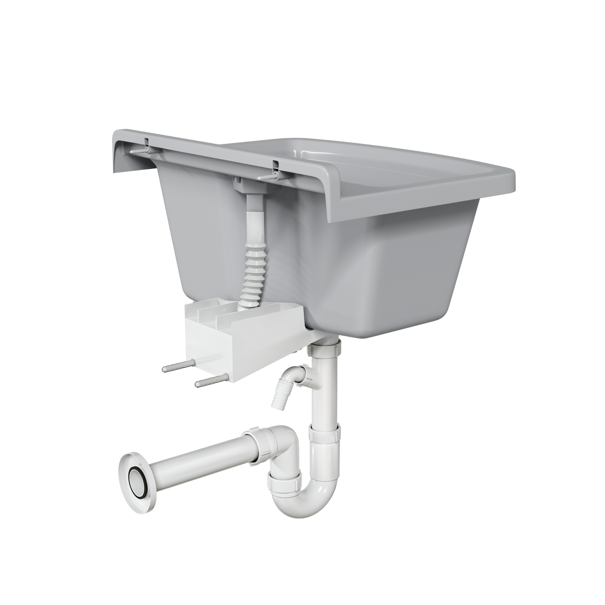 Zlew przeznaczony jest do montażu ściennego (zawieszanego), co pozwala na maksymalne zagospodarowanie przestrzeni pod komorą i ułatwia utrzymanie czystości na podłodze. Solidne mocowania zapewniają stabilność nawet przy pełnym obciążeniu wodą.