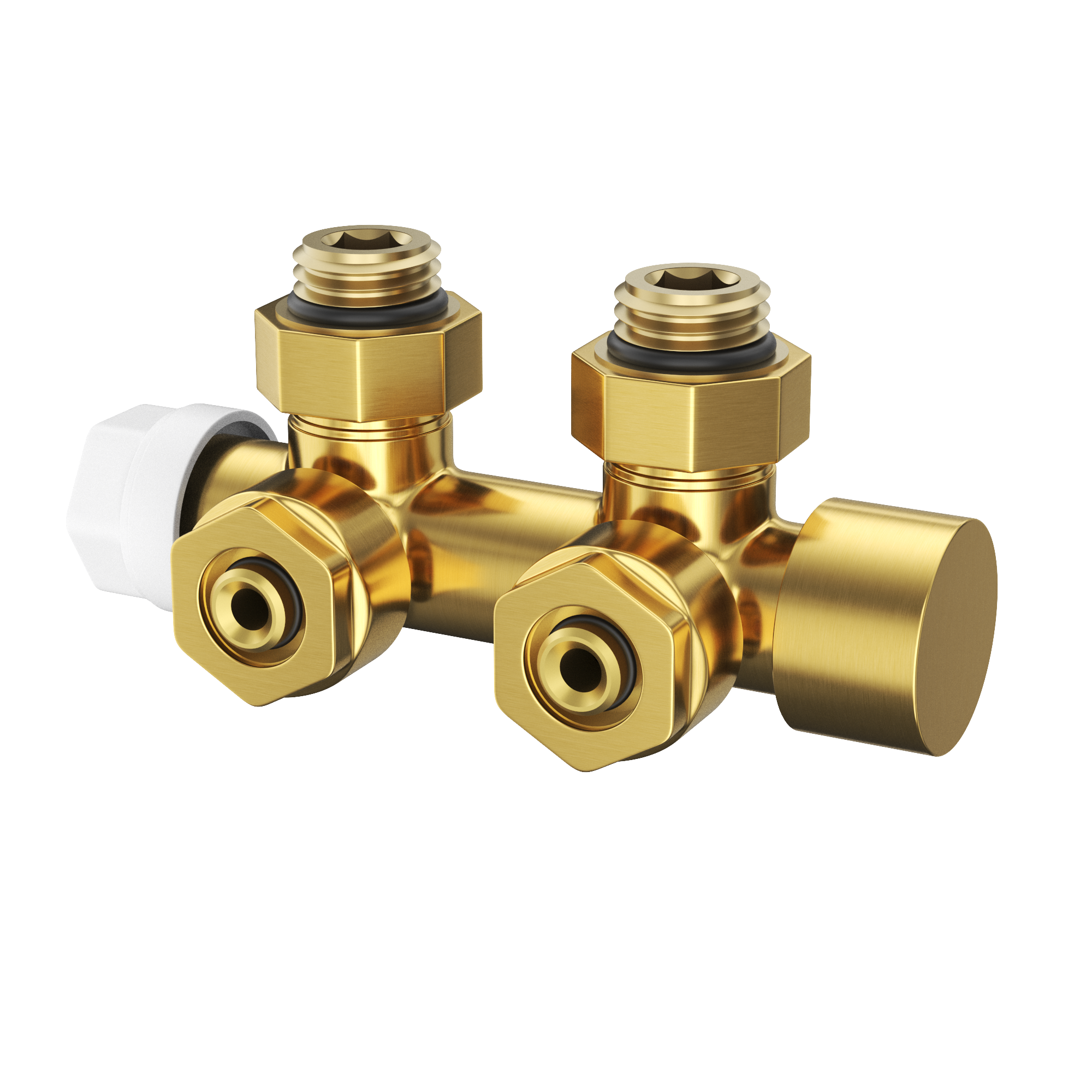 Nowoczesny zawór do grzejnika PEX w kolorze złoto szczotkowane to połączenie trwałości, funkcjonalności i eleganckiego wyglądu.