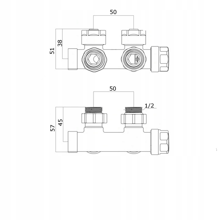 Zawór termostatyczny do grzejnika PEX komplet mosiężny 1/2