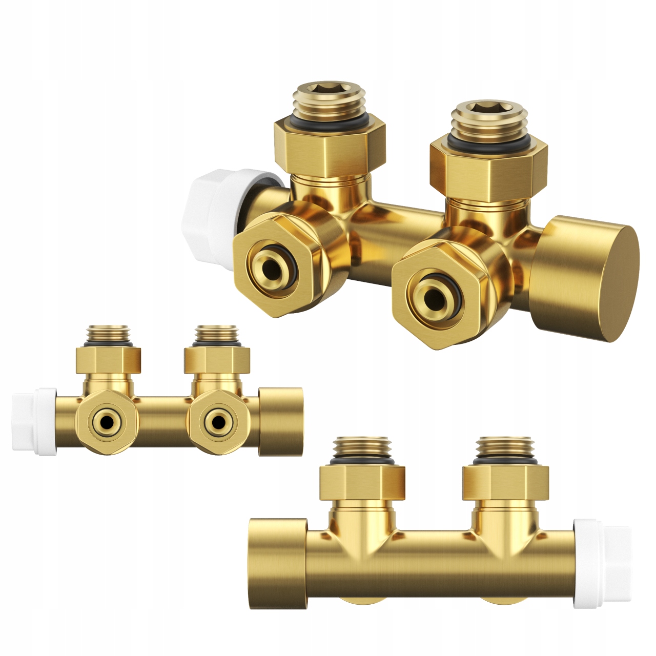 Zawór termostatyczny do grzejnika PEX komplet mosiężny 1/2 – szczotkowane złoto