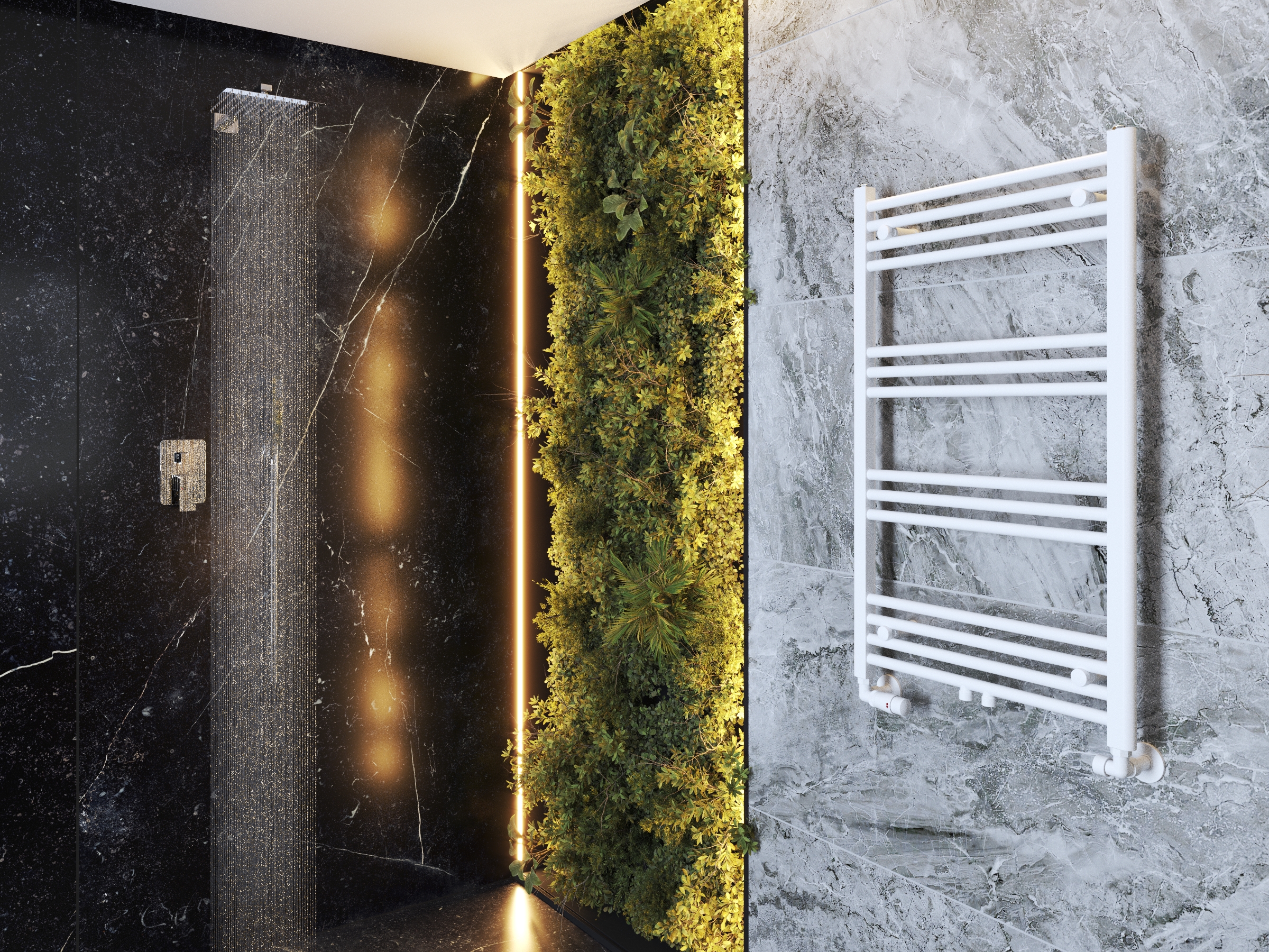 Maksymalna funkcjonalność (Design drabinkowy): Przemyślany układ szczebli pozwala na wygodne suszenie ręczników i tekstyliów domowych, co jest kluczowe w codziennym użytkowaniu łazienki.