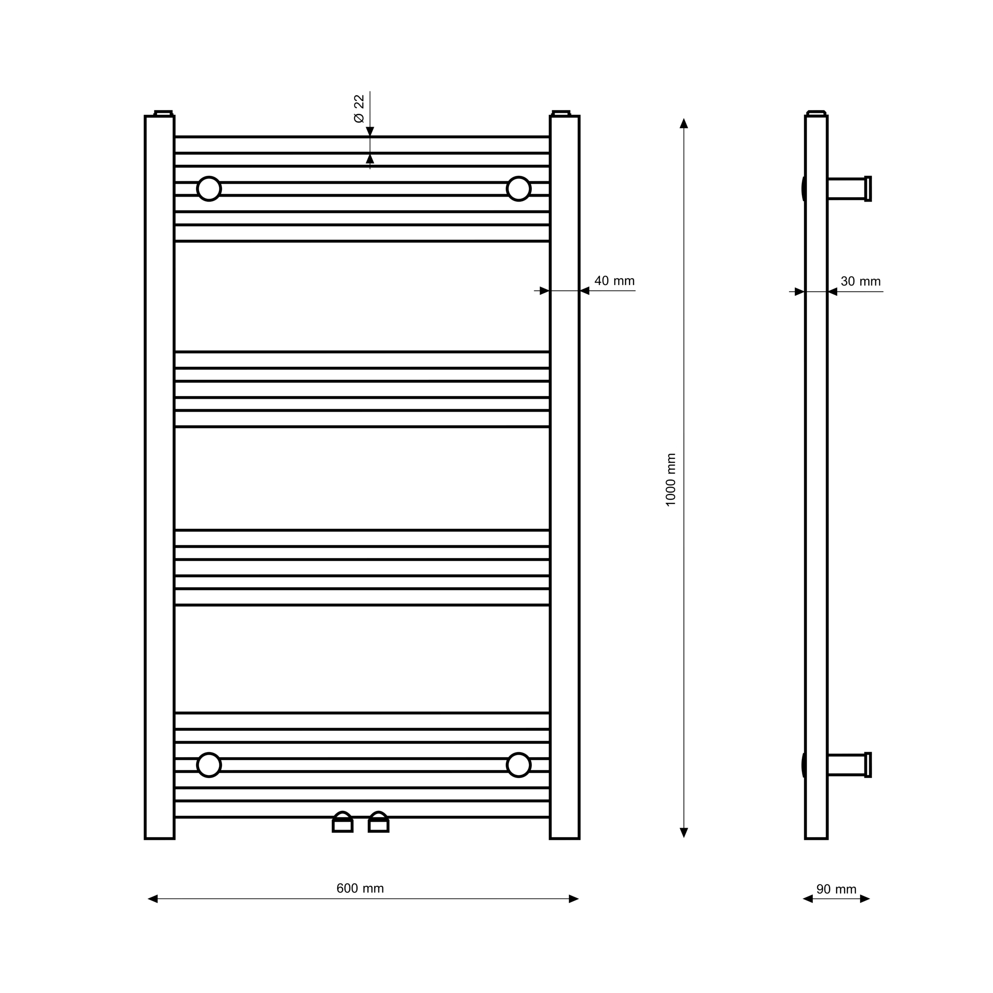 - 4x G ½″ na dole po prawej lub lewej stronie grzejnika