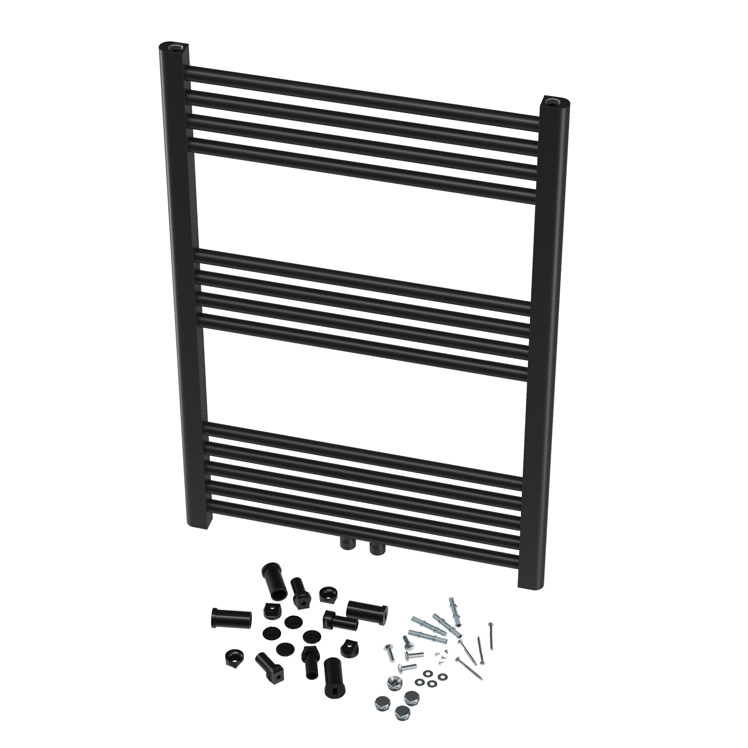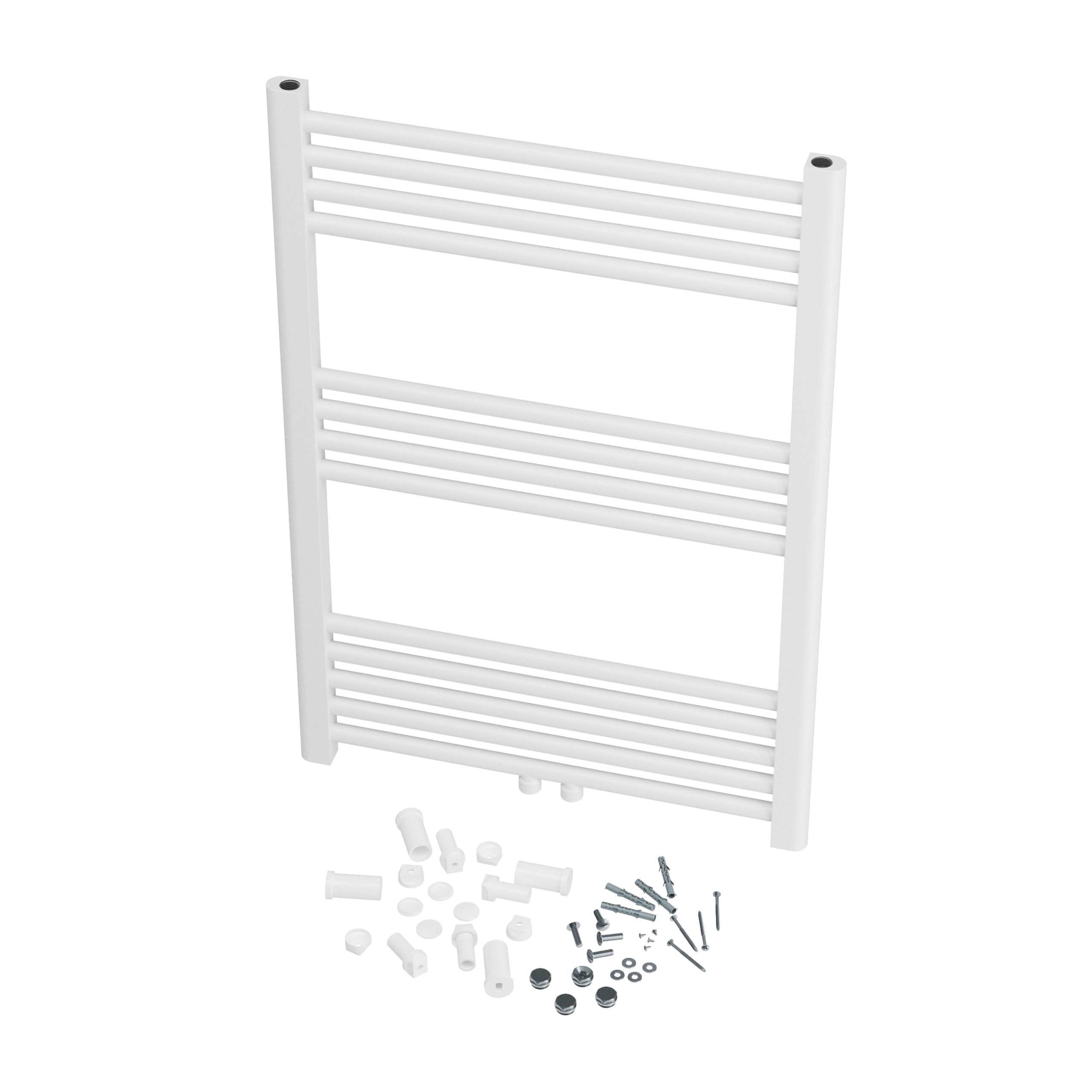Zestaw zawiera wszystko, co potrzebne do montażu i podłączenia grzejnika.