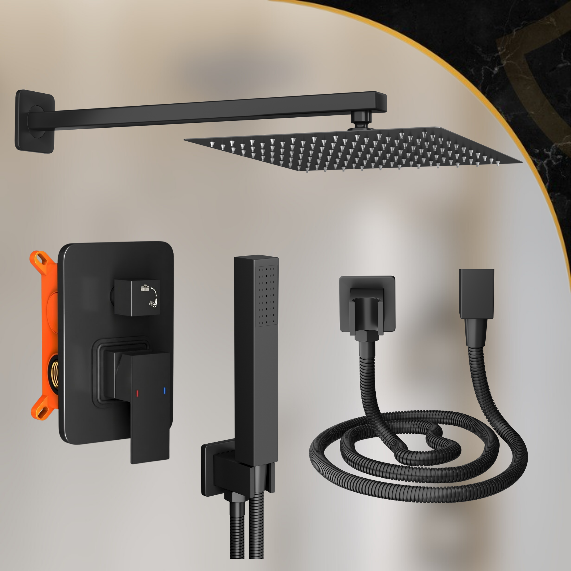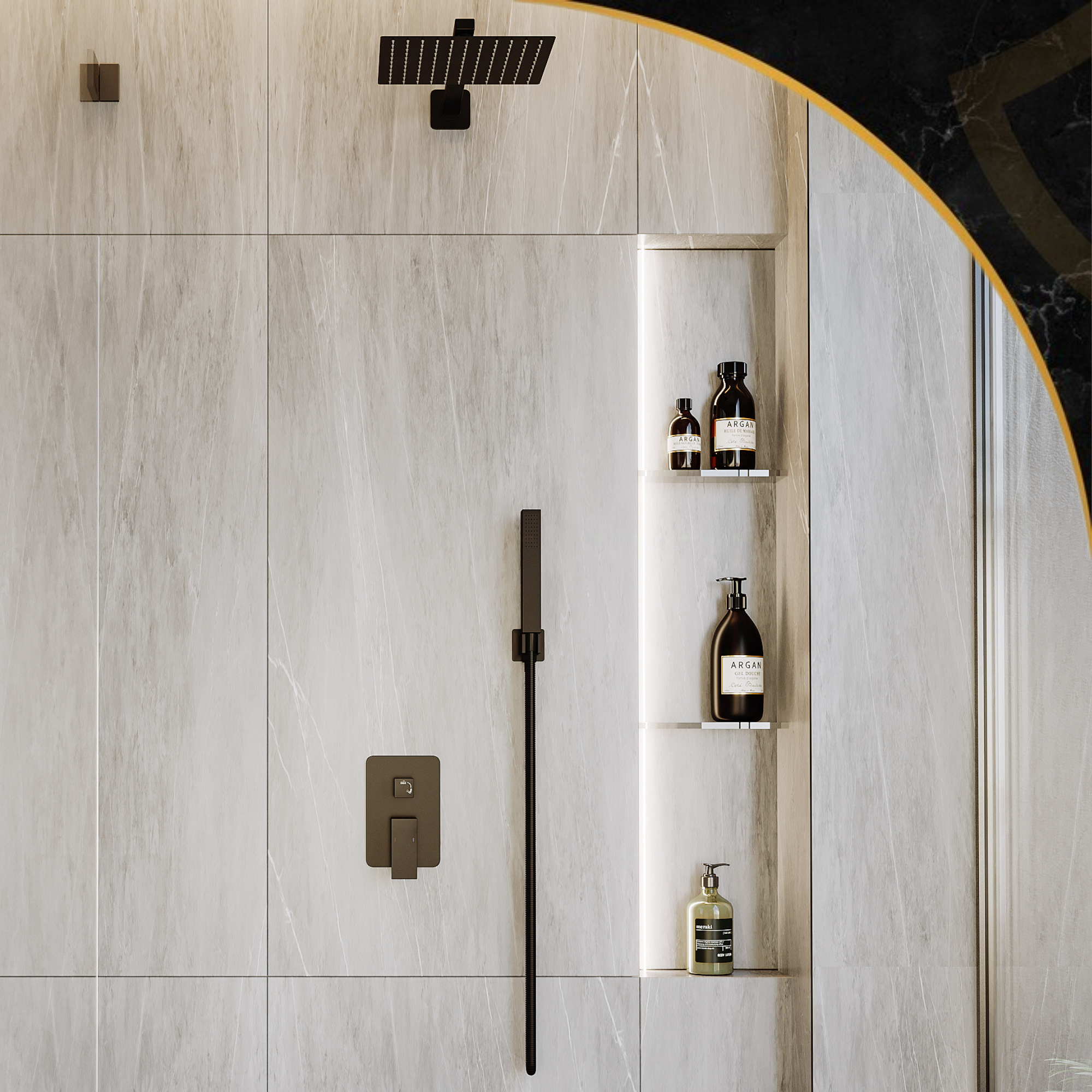 Deszczownica czarna zestaw podtynkowy do łazienki prysznic bateria paje