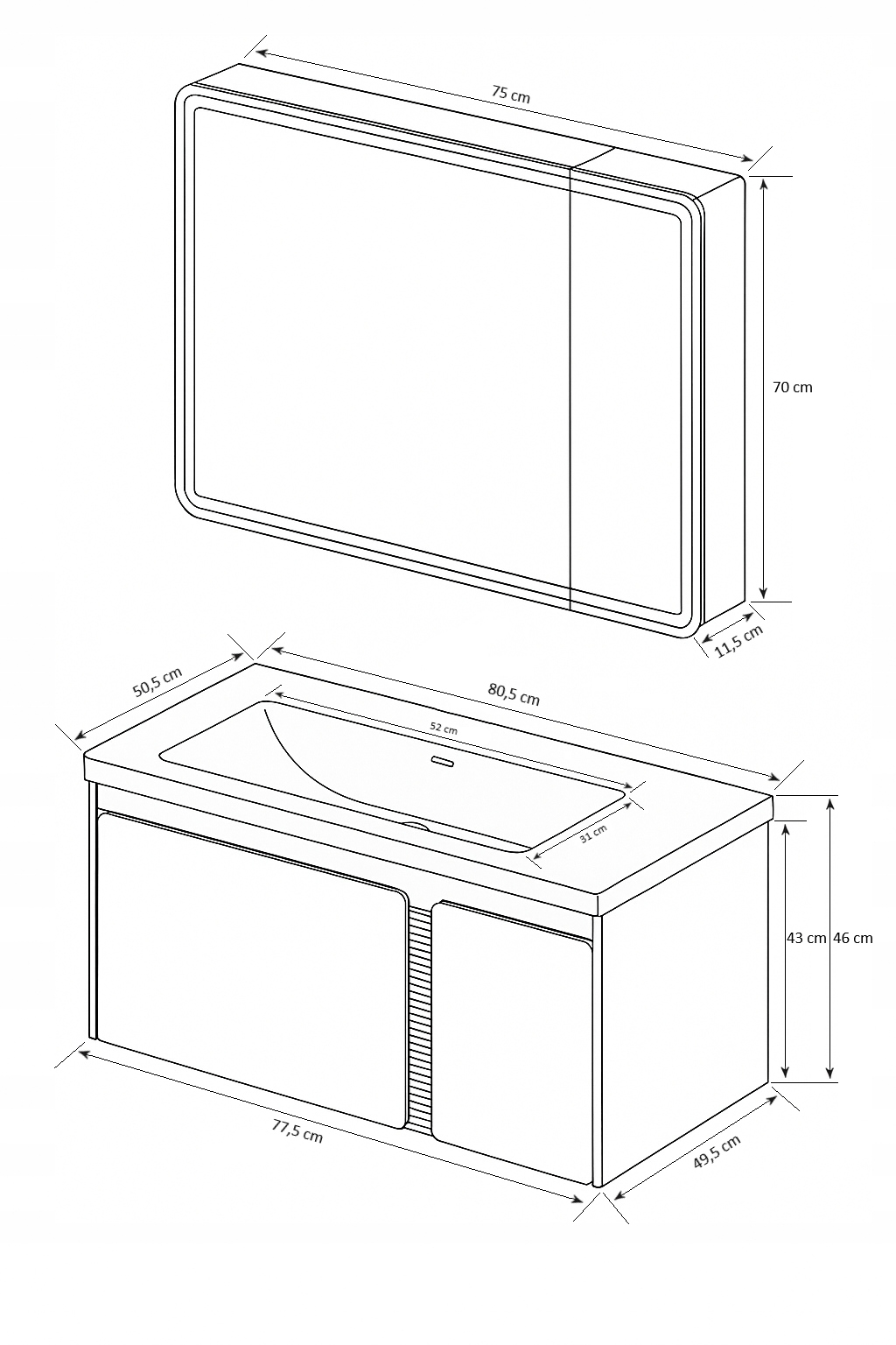 • Wysokość części lustrzanej: 70 cm