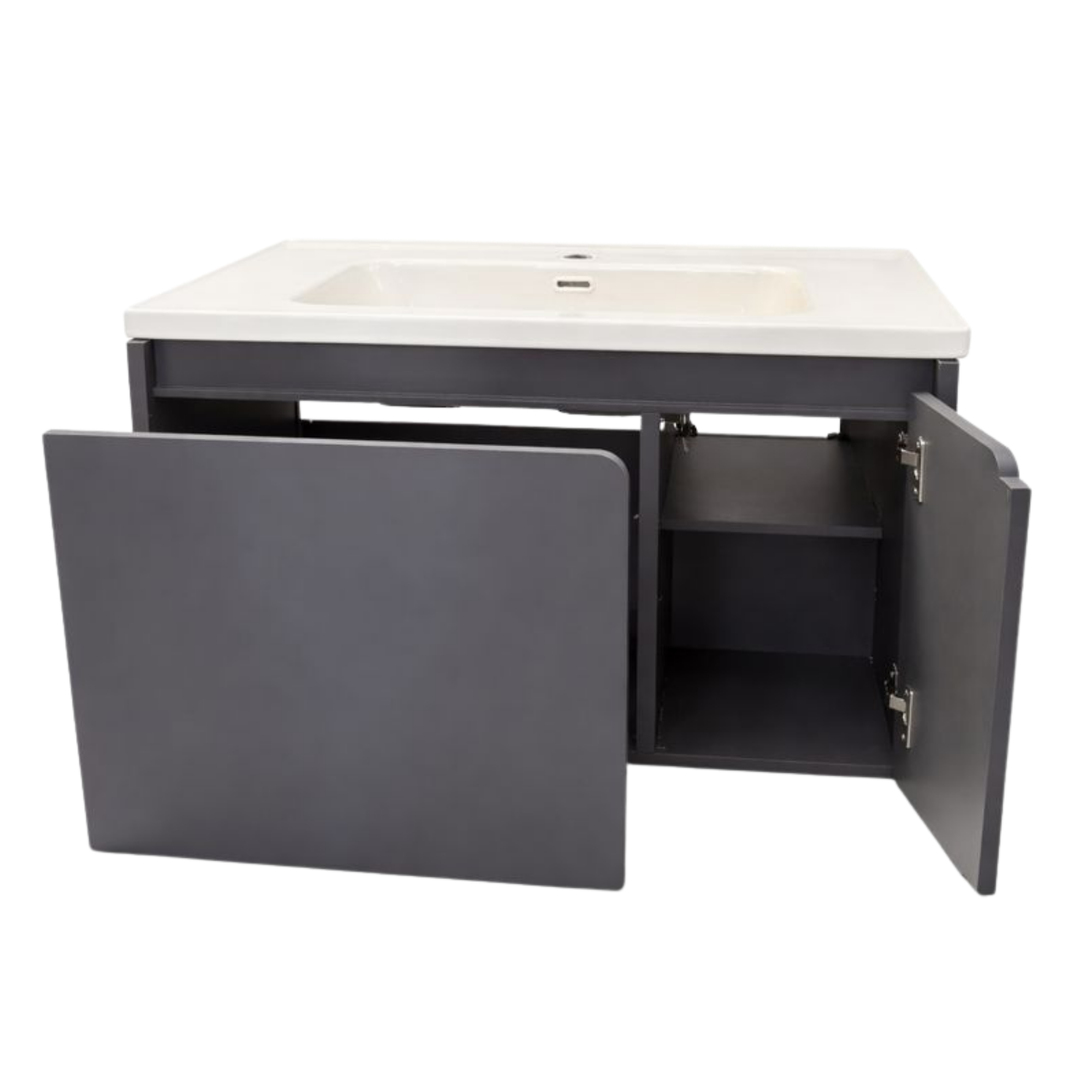 Wewnętrzne półki szafek, oferują dużo miejsca do przechowywania kosmetyków, środków higienicznych i akcesoriów łazienkowych. Funkcjonalny układ wnętrza ułatwia organizację i wygodny dostęp do wszystkiego, co potrzebne na co dzień.