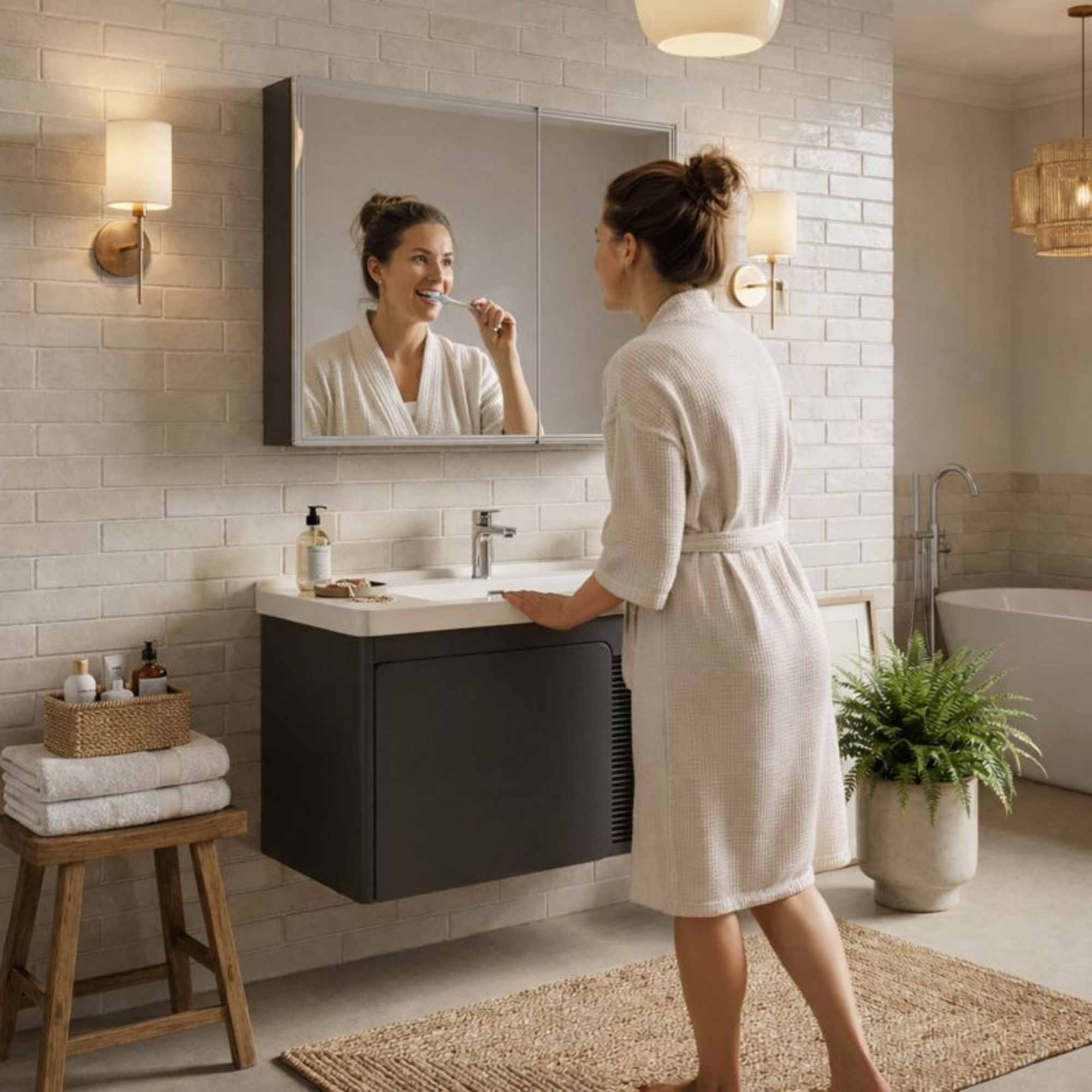 Wbudowane światło LED buduje przyjemny nastrój w łazience i zapewnia idealne warunki do codziennej pielęgnacji skóry. Praktyczne rozwiązanie, które łączy estetykę z komfortem użytkowania.