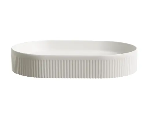 Ta umywalka nablatowa ceramiczna owalna to idealne rozwiązanie dla osób ceniących minimalizm, elegancję i jakość premium. Jej gładka, śnieżnobiała powierzchnia w połączeniu z delikatnymi pionowymi żłobieniami tworzy efekt subtelnego luksusu, który odmienia charakter każdej łazienki.