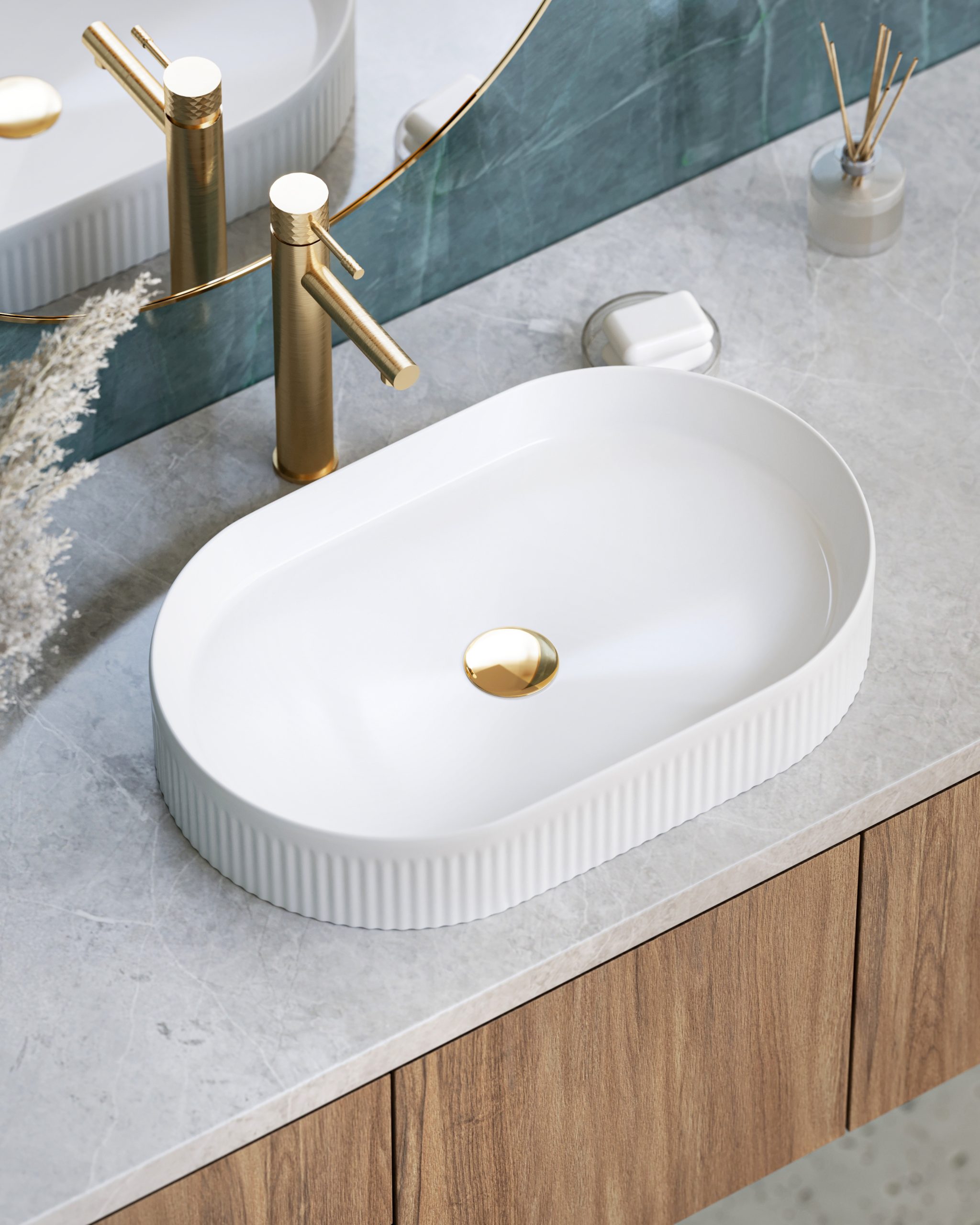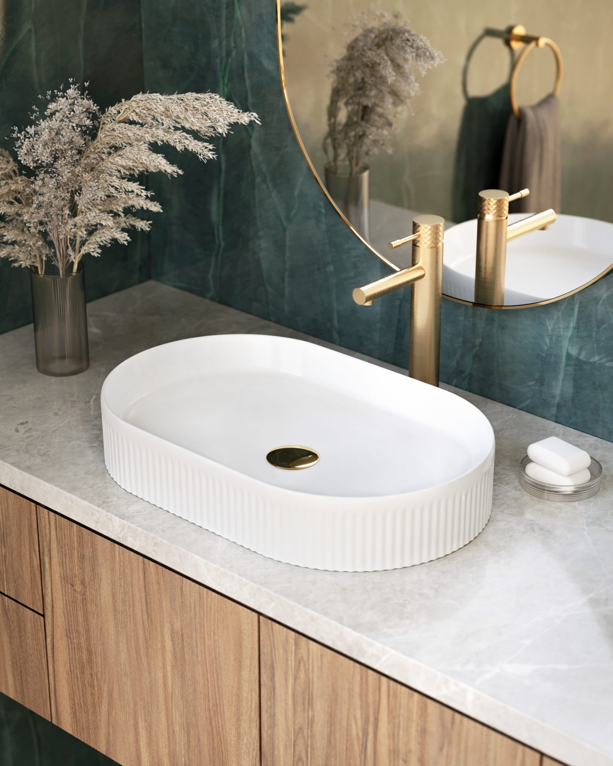 Wyobraź sobie poranną rutynę w przestrzeni, gdzie każdy detal ma znaczenie. Delikatne ryflowanie odbija światło, tworząc efekt subtelnego luksusu. NORA nie jest tylko umywalką – to biżuteria Twojej łazienki.