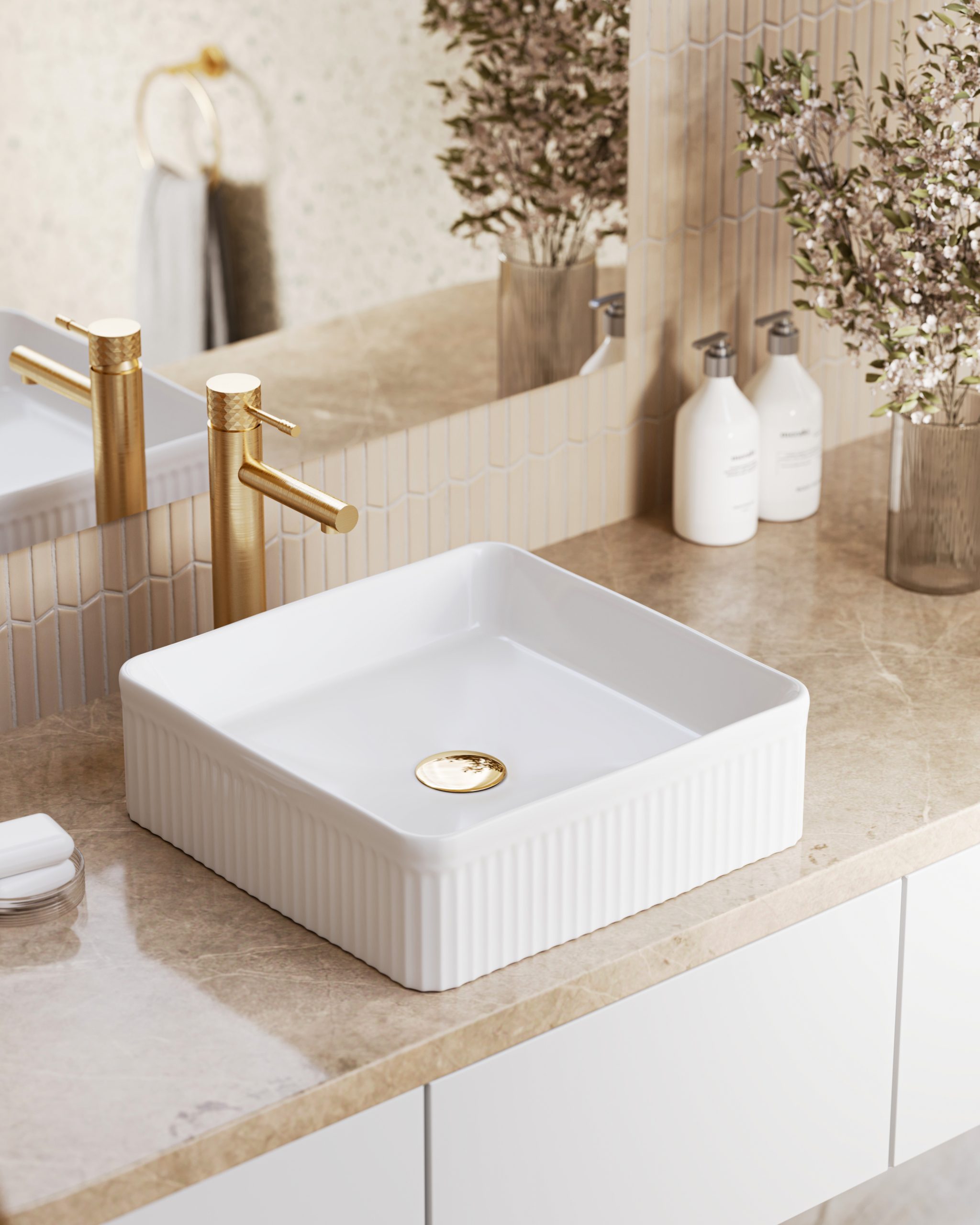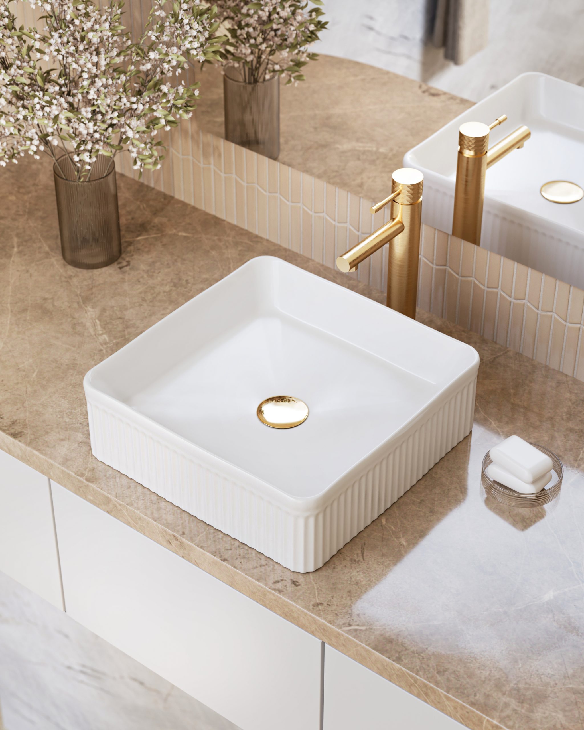 Wyobraź sobie poranną rutynę w przestrzeni, gdzie każdy detal ma znaczenie. Delikatne ryflowanie odbija światło, tworząc efekt subtelnego luksusu. VIORA nie jest tylko umywalką – to biżuteria Twojej łazienki.