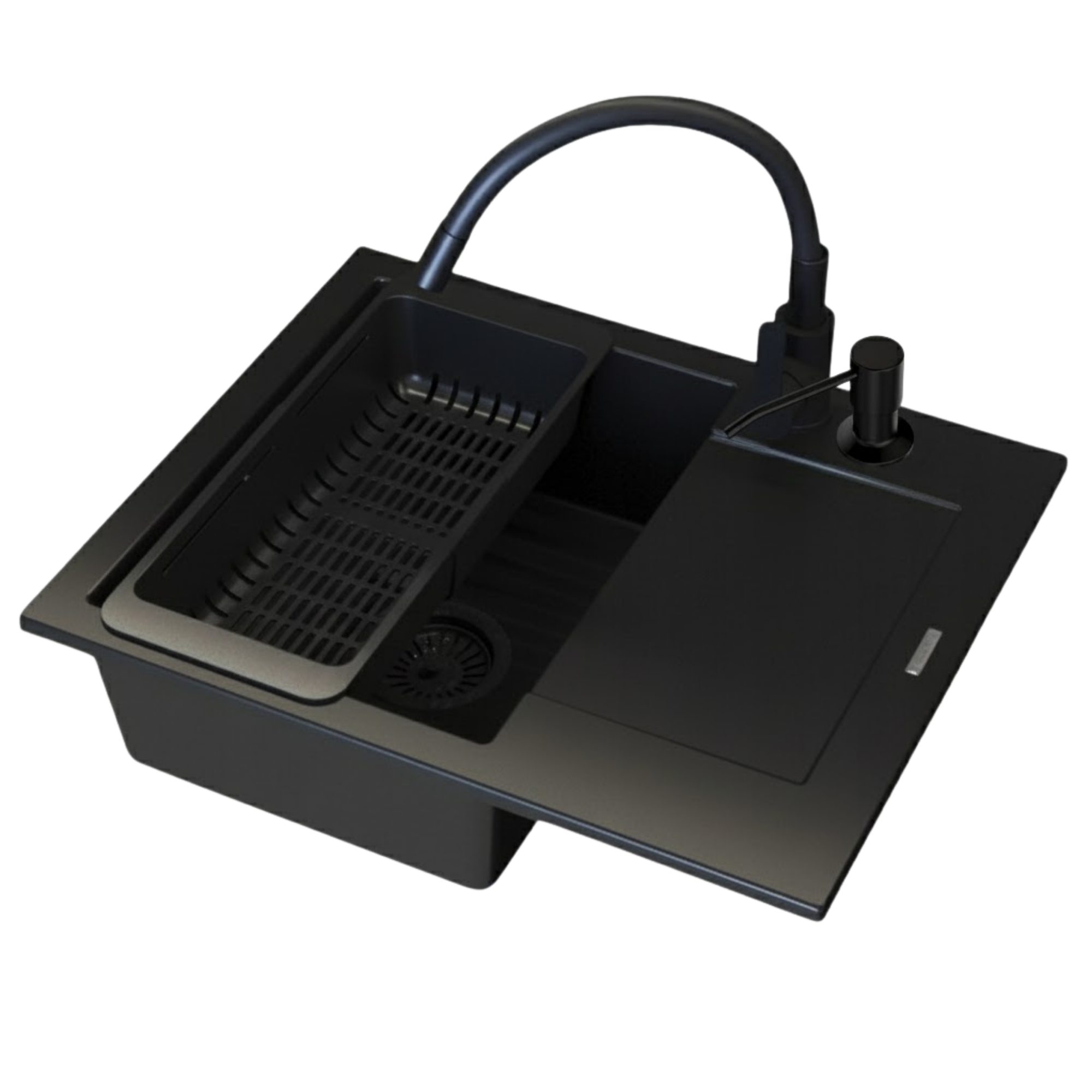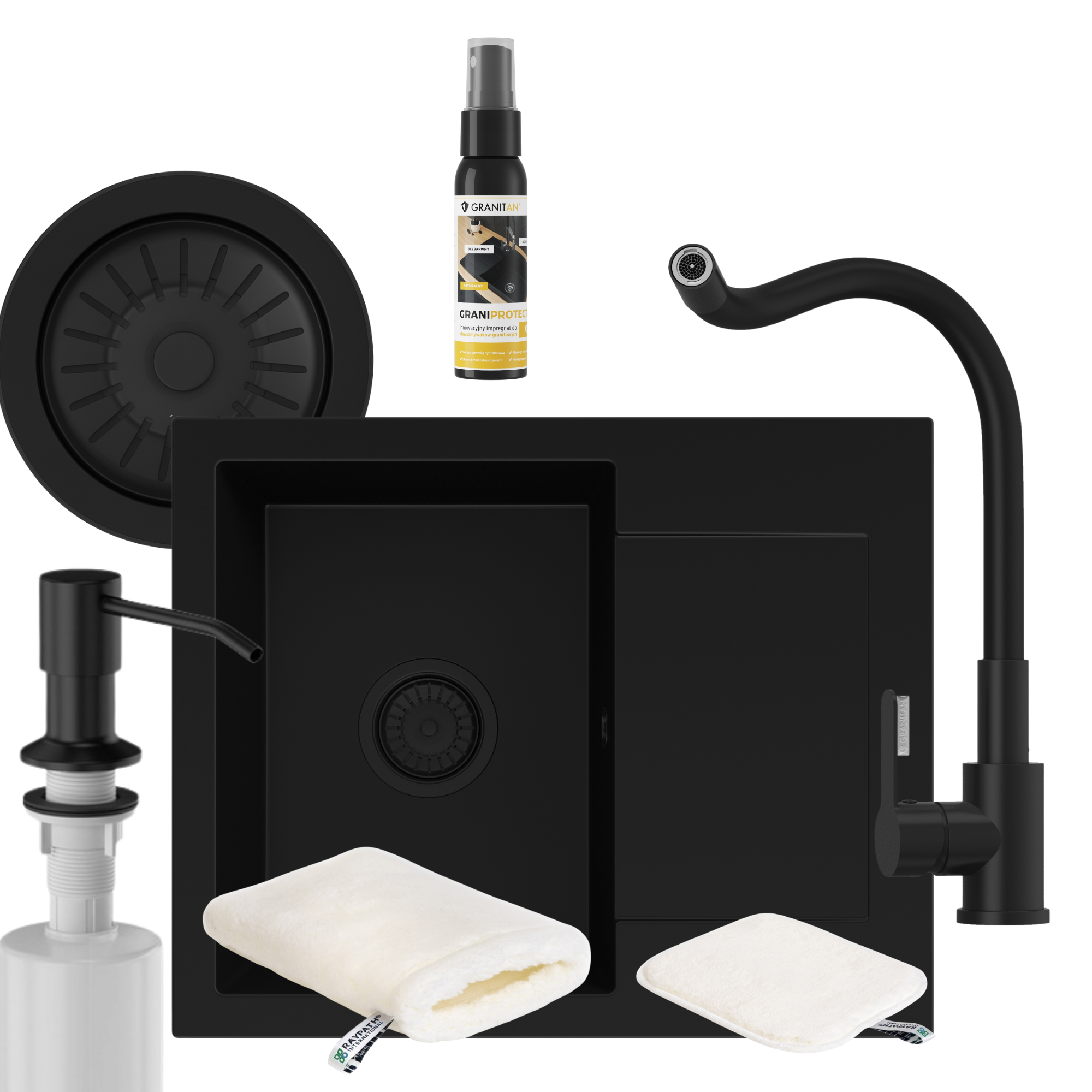 ZLEWOZMYWAK granitowy czarny Zestaw BELLO bateria syfon czyściki RAYPATH