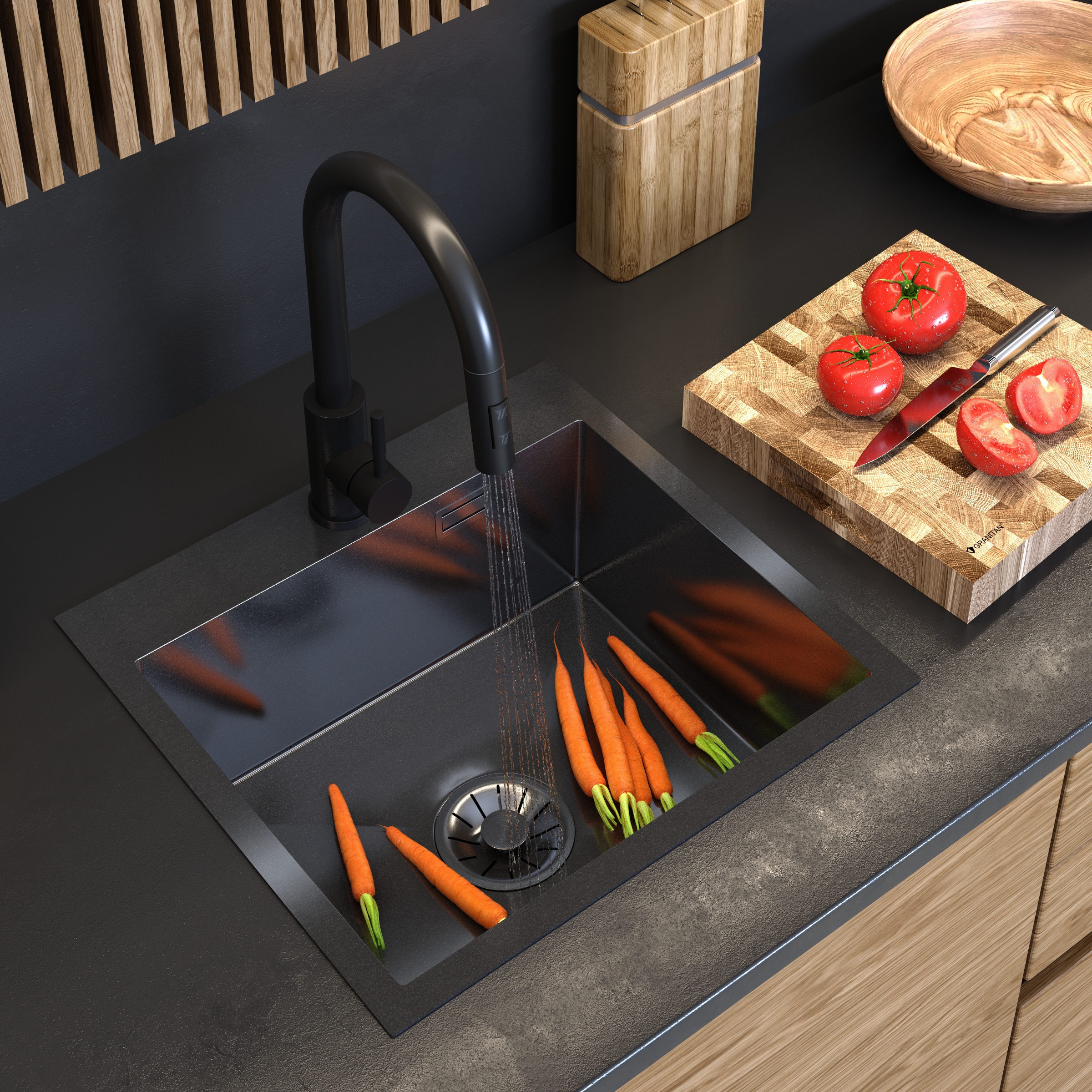 Zlewozmywak stalowy jednokomorowy czarny SILVO48 zlew kuchenny syfon LUX